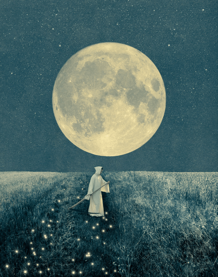 Zwraca się do mnie dziwnym, uroczystym tonem. Mówi z łagodną mocą: Usłyszałam, Pani, twój płacz. Dziś, w chwili księżycowej okultacji, gdy dla ludzkich oczu pozostaję ukryta, pozwolono mi zniżyć się do ciebie. Zapragnęłam cię pocieszyć. Wprowadzić cię, Pani, w tajemnicę milczenia twojej duszy, byś usłyszała wielką pieśń istnienia i przypomniała prawdę o samej sobie. Zanim zapytasz o cokolwiek – usiądź obok. Posłuchaj, co mam ci do powiedzenia. Dwa krzesła przygotowane zawczasu, posłużą nam tej długiej nocy, byśmy nadto nie zmęczyły nóg.