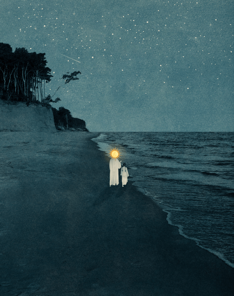 Widzę świetlistą postać, utkaną z eterycznej substancji. Namacalną obecność. Jej biała, powłóczysta szata spływa na piasek, a szerokie rękawy sięgają niemal ziemi. Oblicze jaśnieje tak mocno, że trudno dostrzec rysy twarzy. Są nieuchwytne. A może ich nie ma. A jednak patrzy na mnie – zagląda w sam środek mojej duszy i nasyca ją spokojem. Dziwne to, myślę. Ale stoję nieruchomo. Bezradna wobec cudu. Pozwalam jej patrzeć. A ona spogląda wnikliwie: bada moją noc i rany ukryte w jej głębi.