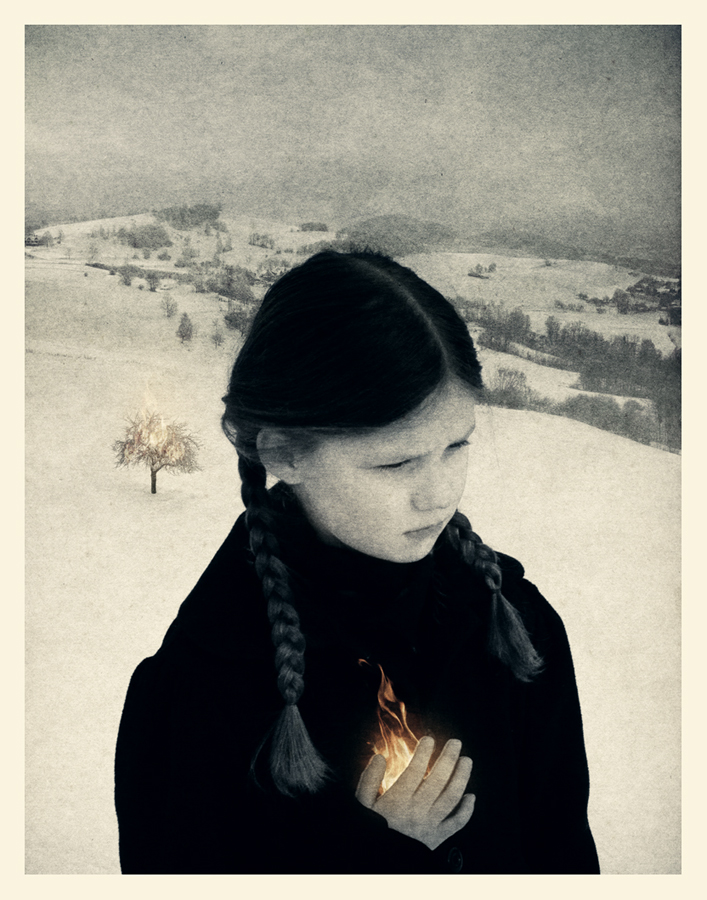 Mur. Tu właśnie zapędzają nas czarne, szczekające wniebogłosy psy. I kiedy już nic można zrobić, uchyla się brama. I wychodzi przez nią Skromna Pani, która trzyma w ręku pochodnię i przepędza jasnym płomieniem dzikie bestie. Nie bój się, już nic się nie bój, powtarza. I człowieka opuszcza strach. Nagle robi się zupełnie cicho. Słychać opadające na ziemię płatki śniegu i bicie własnego serca. A Pani zaprasza do środka. Można wejść. To jej Zimowy Ogród, tajemnicza Osada, pośrodku której płonie Wielkim Ogniem drzewo. A wokół bawią się dzieci, podobne nam. Chwytają w dłonie małe płomyki, które zrywają jak dojrzałe owoce z drzewa, i tańczą z nimi w ciszy zapadającego zimowego wieczoru. Tańczą i śmieją się. Jest im ciepło.
