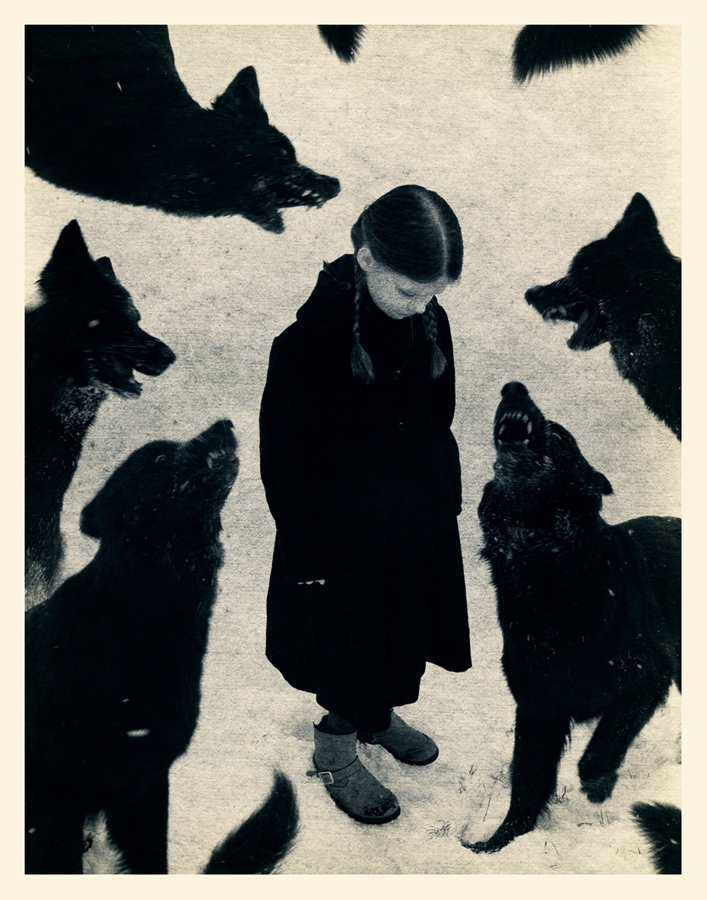 Opowieść prowadziła mnie sama w nieznane. Ale czy jedynie o wędrówkę przed siebie tu szło? Był tam przecież jeszcze ktoś, za kim podążała jak we śnie moja mała bohaterka i jej czarny jak węgiel szczeniak. Ów nieznajomy wyłonił się niespodziewanie z krajobrazu zimowych pól. Lekko przygarbiona postać Biednego Pana, który przykuł uwagę dziecka. Szedł bardzo powoli, ciągnąc za sobą stary wózek z różnymi szpejami, które wydawały dźwięki i mieniły się kolorami. Może bezdomny albo szaleniec jakiś, jurodiwy? Może Bóg sam pośród porannego światła i bieli powrócił jak każdego dnia do swego, a swoi – jak od zawsze to już jest – nie przyjęli Go. Nieważne. Po prostu Biedny Pan z wózkiem pośród zimowego krajobrazu. Zatem trzeba na moment przerwać dobrą zabawę w zjeżdżanie na sankach, otrzepać kolana ze śniegu, zejść z góry i przyjrzeć mu się uważniej. Może spróbować przez jakiś czas go śledzić, sprawdzić, dokąd idzie albo gdzie pomieszkuje. Dowiedzieć się, co tam wiezie ze sobą, jakie skarby tak dzwonią, stukają i szeleszczą. Zobaczyć, jakie ma oczy. Usłyszeć, może coś powie. Pokazać mu Lunę i sanki, które zrobił dziadek.